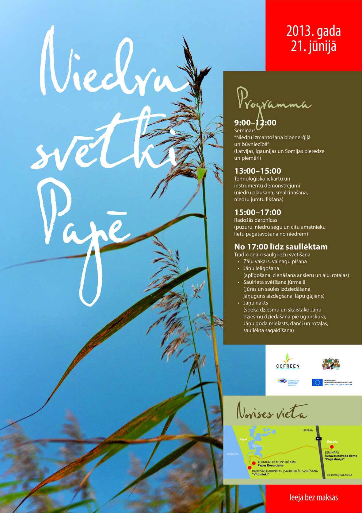 ______________________________________________________________ Niedru jumtu likšanas paraugdemonstrējumi “Niedru svētki Papē” ietvaros 21.06.2013 notiks Mikjāņos.